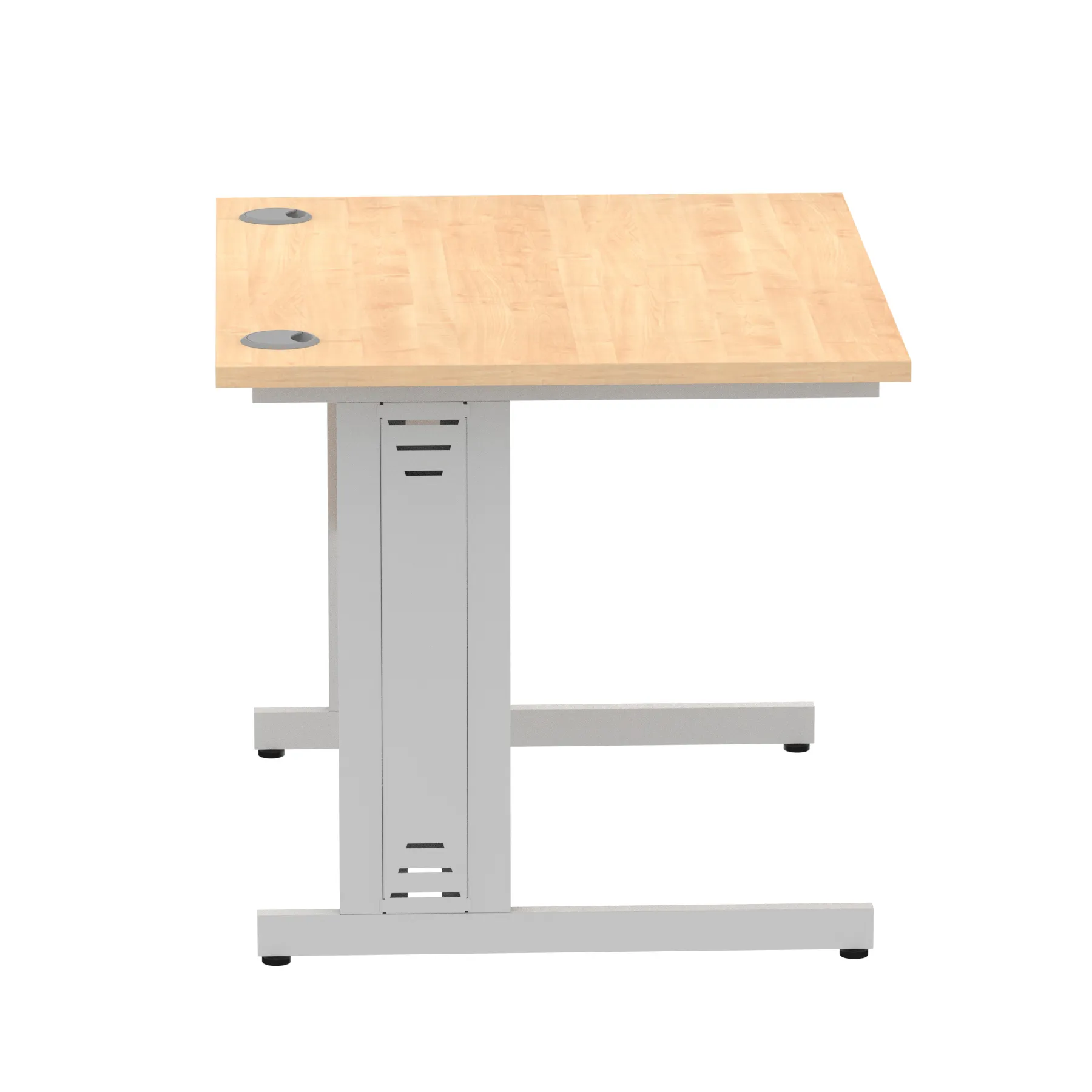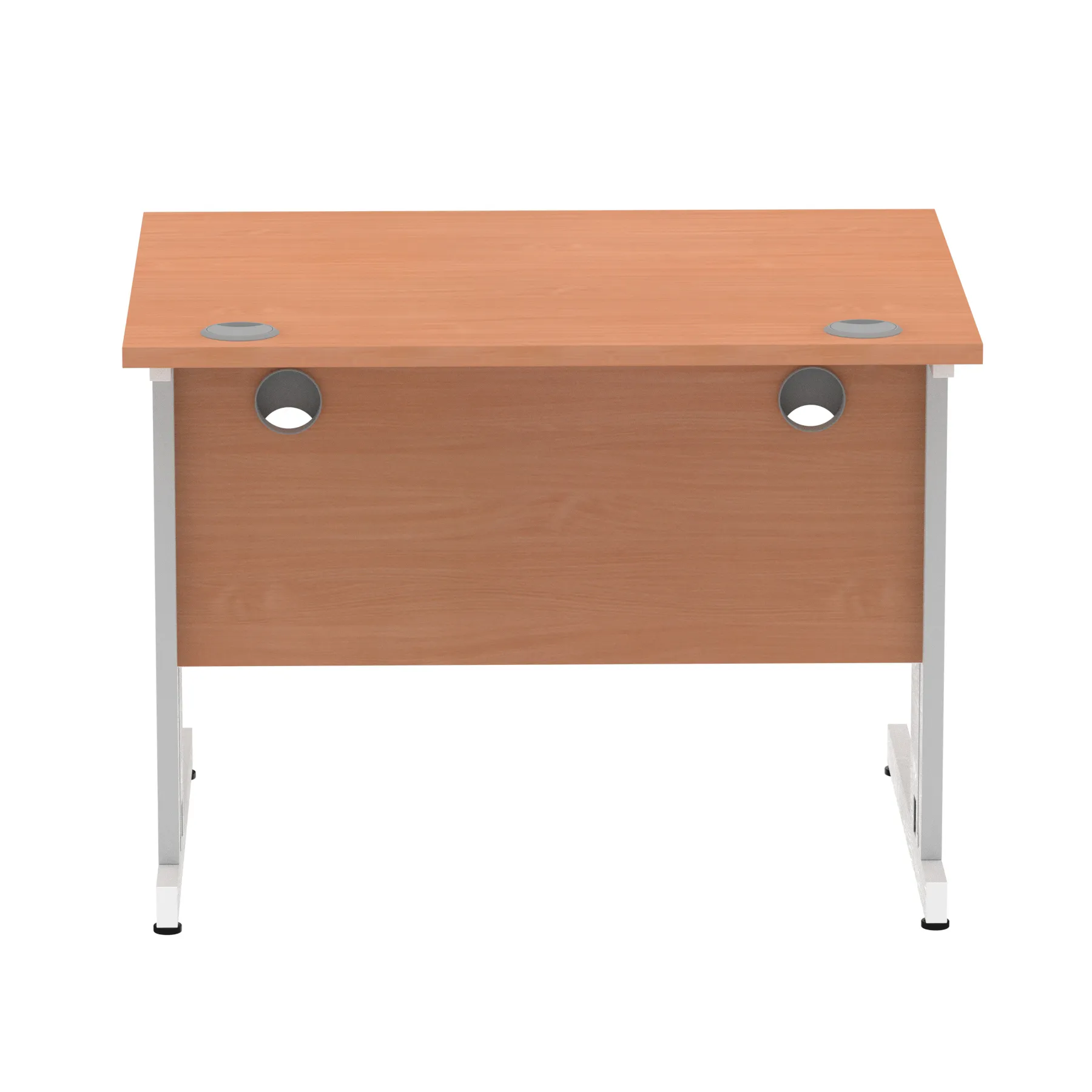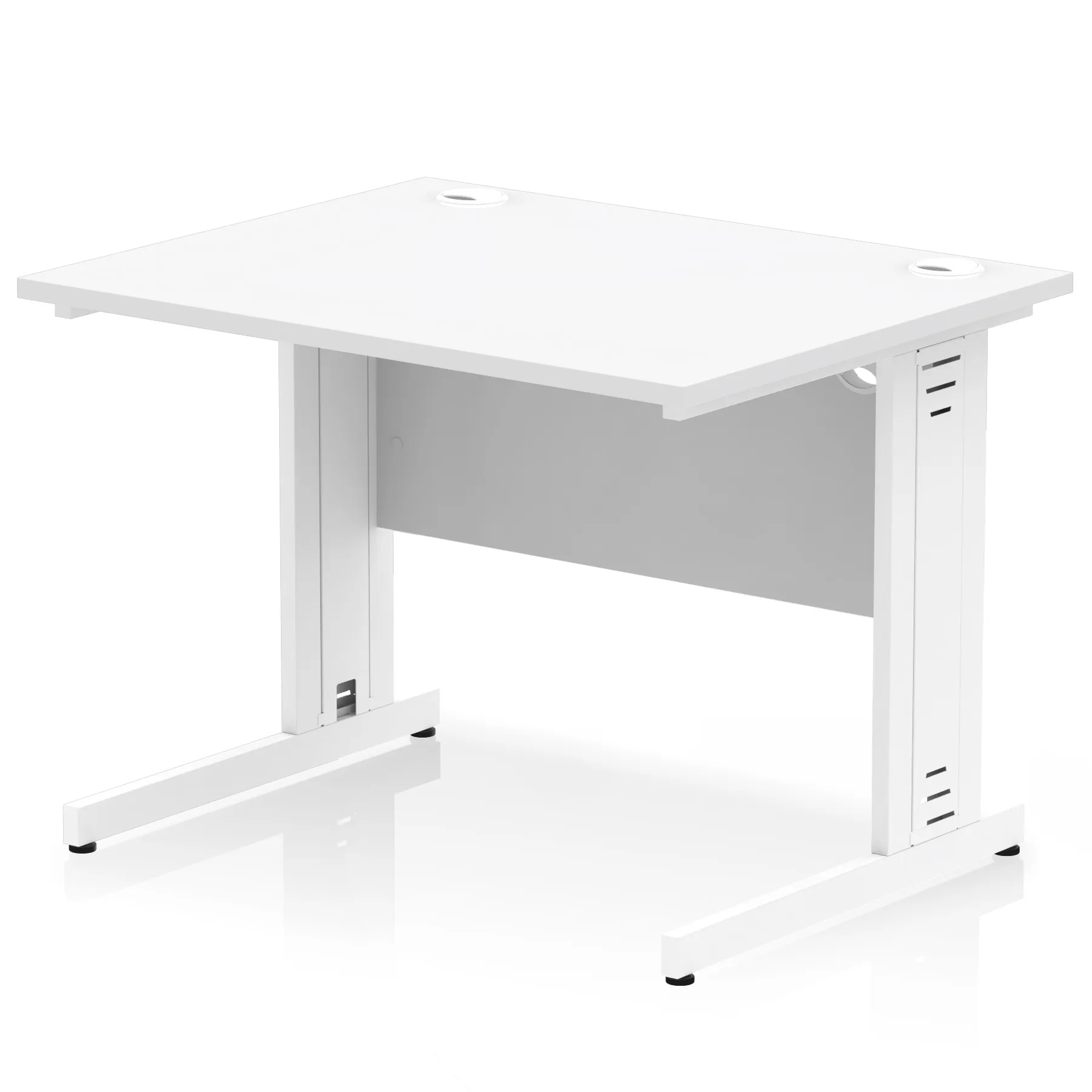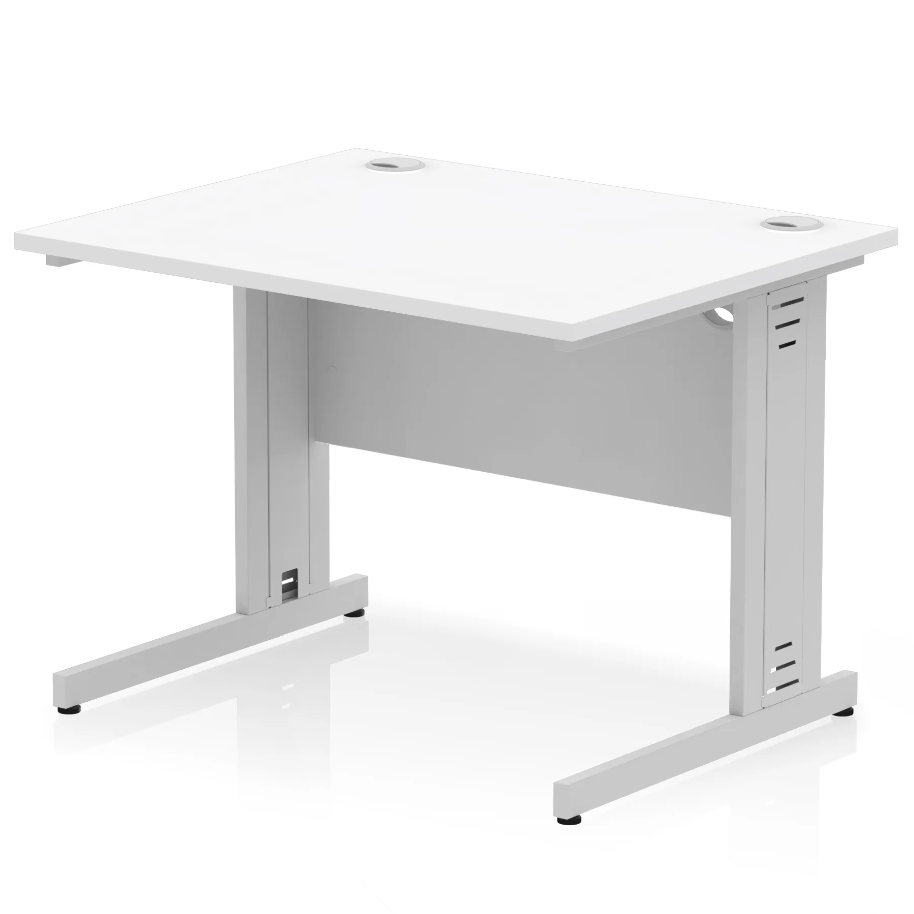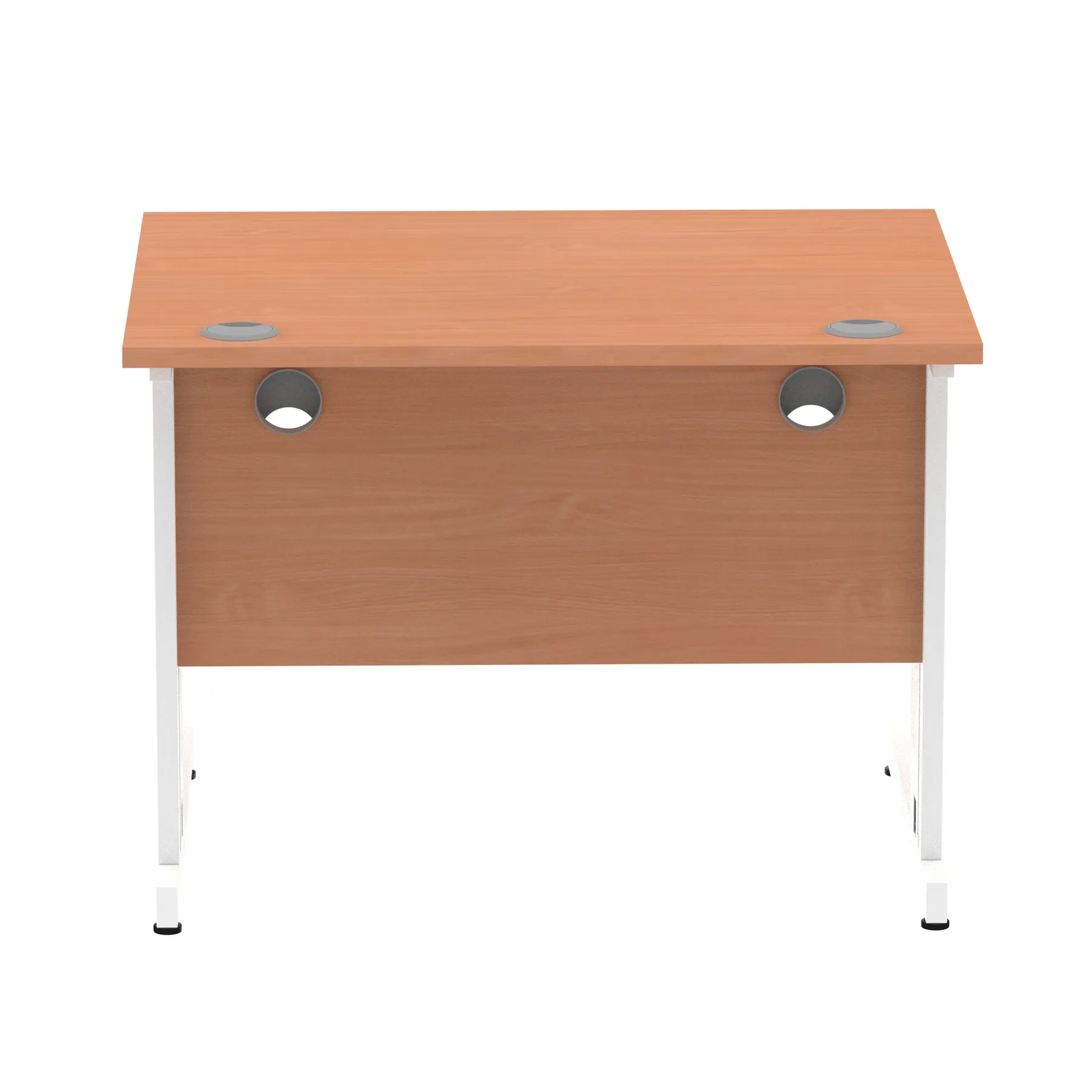 Impulse contract desk | 25mm tops | Wire management panel | Heat resistant melamine finish | 18mm modesty panel | 2mm protective abs edging | Cable managed legs | 2 cable ports | Height adjustable feet | Steel to steel fixings | 2 modesty panel slots | Deep set modesty panel (5″) allows for compatibility of most screen clamp fittings | Weight Capacity 135Kg