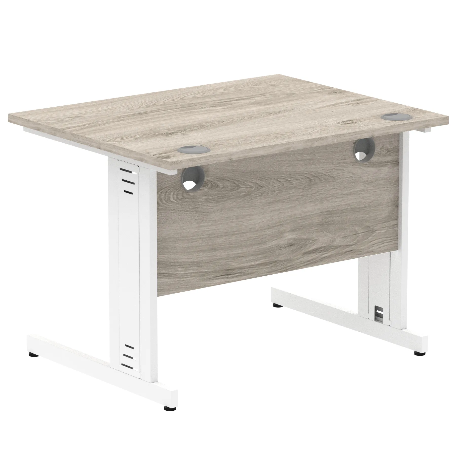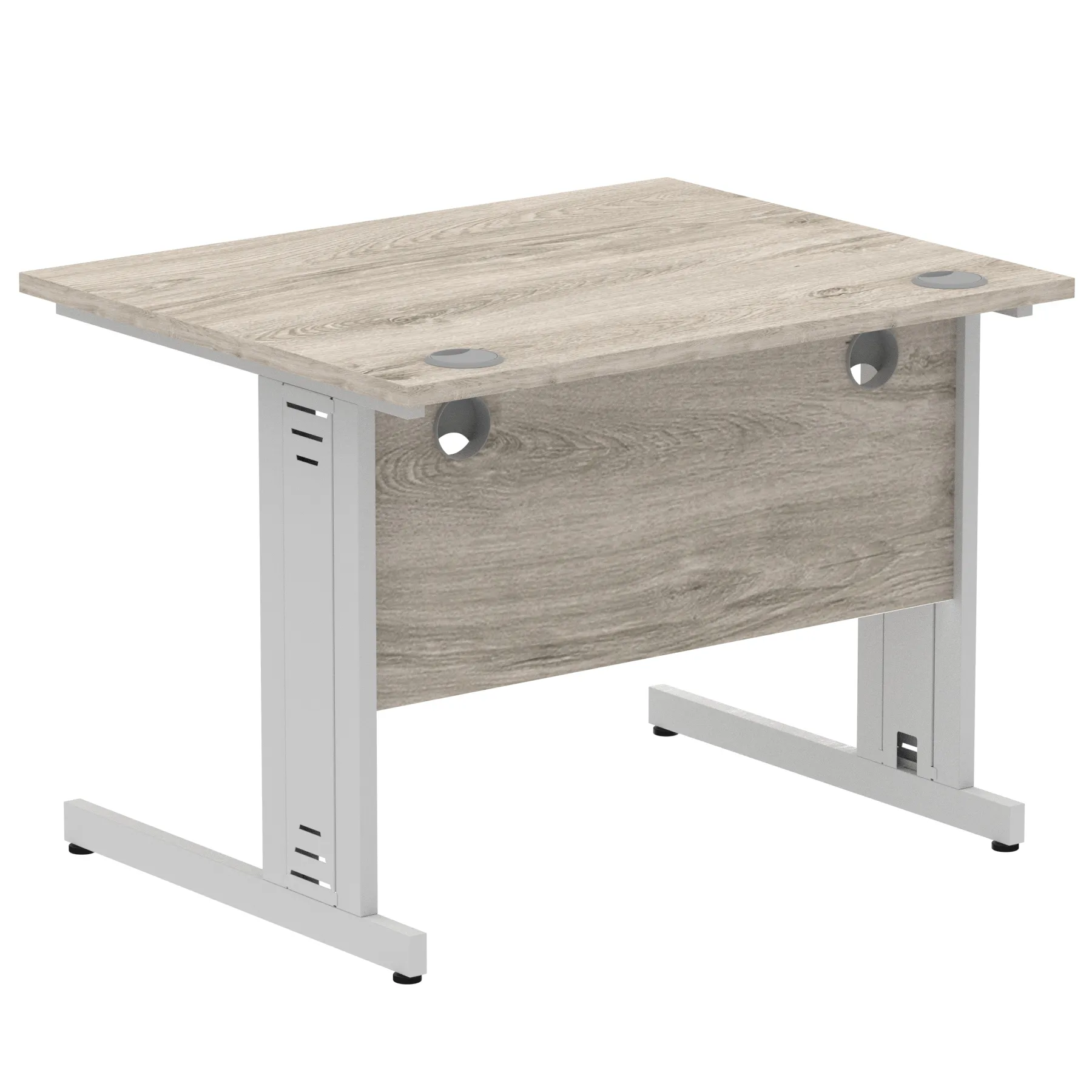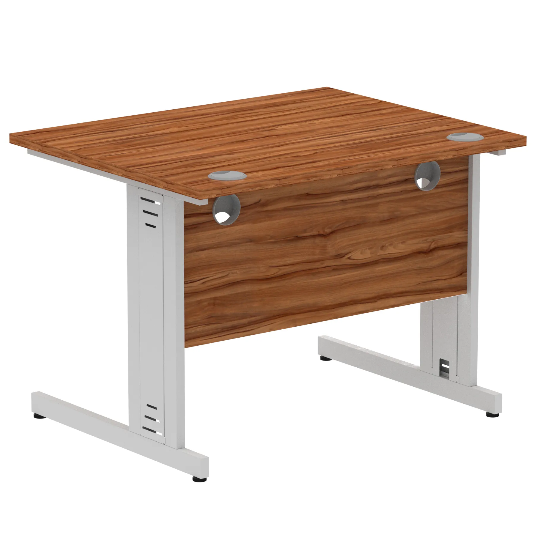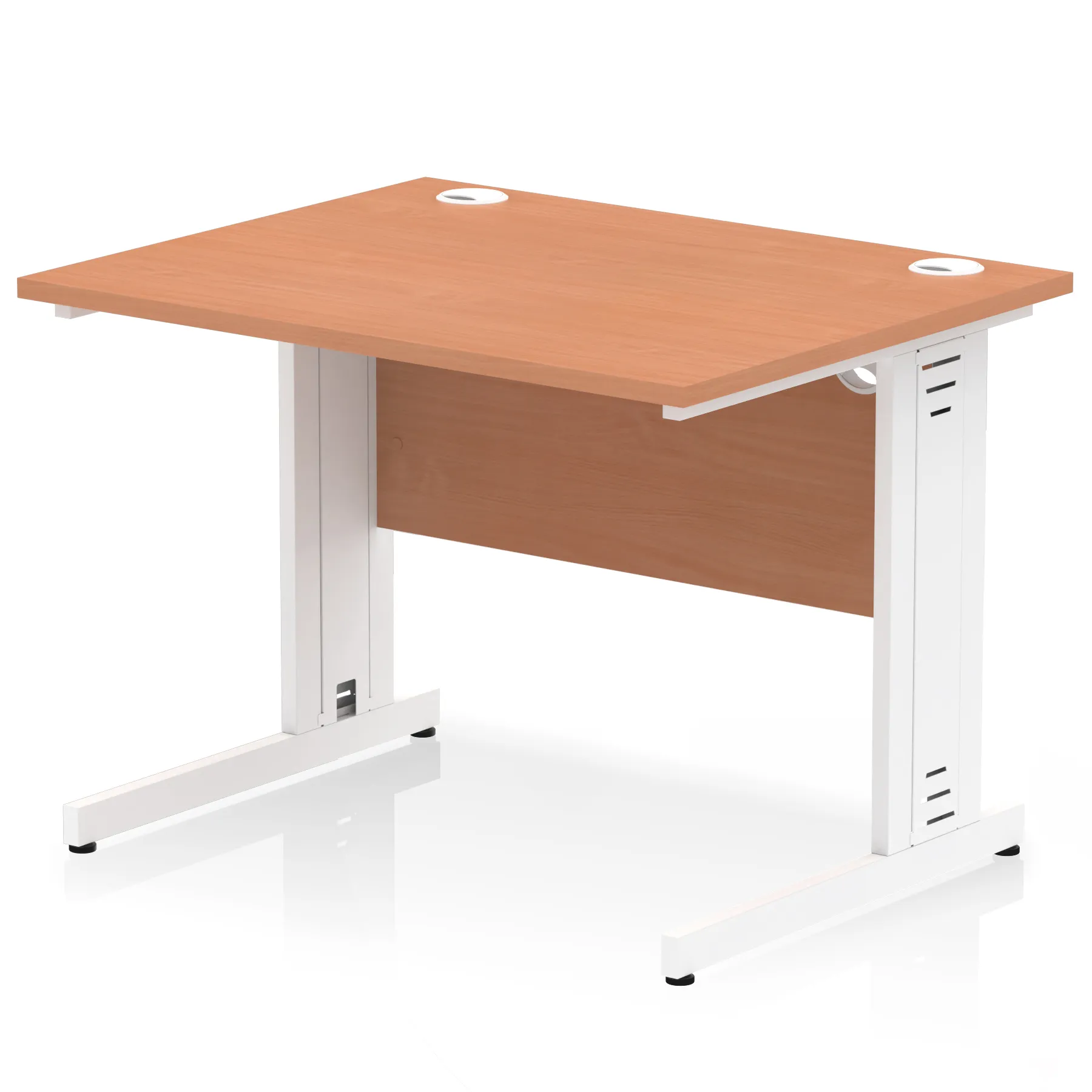 Impulse contract desk | 25mm tops | Wire management panel | Heat resistant melamine finish | 18mm modesty panel | 2mm protective abs edging | Cable managed legs | 2 cable ports | Height adjustable feet | Steel to steel fixings | 2 modesty panel slots | Deep set modesty panel (5″) allows for compatibility of most screen clamp fittings | Weight Capacity 135Kg