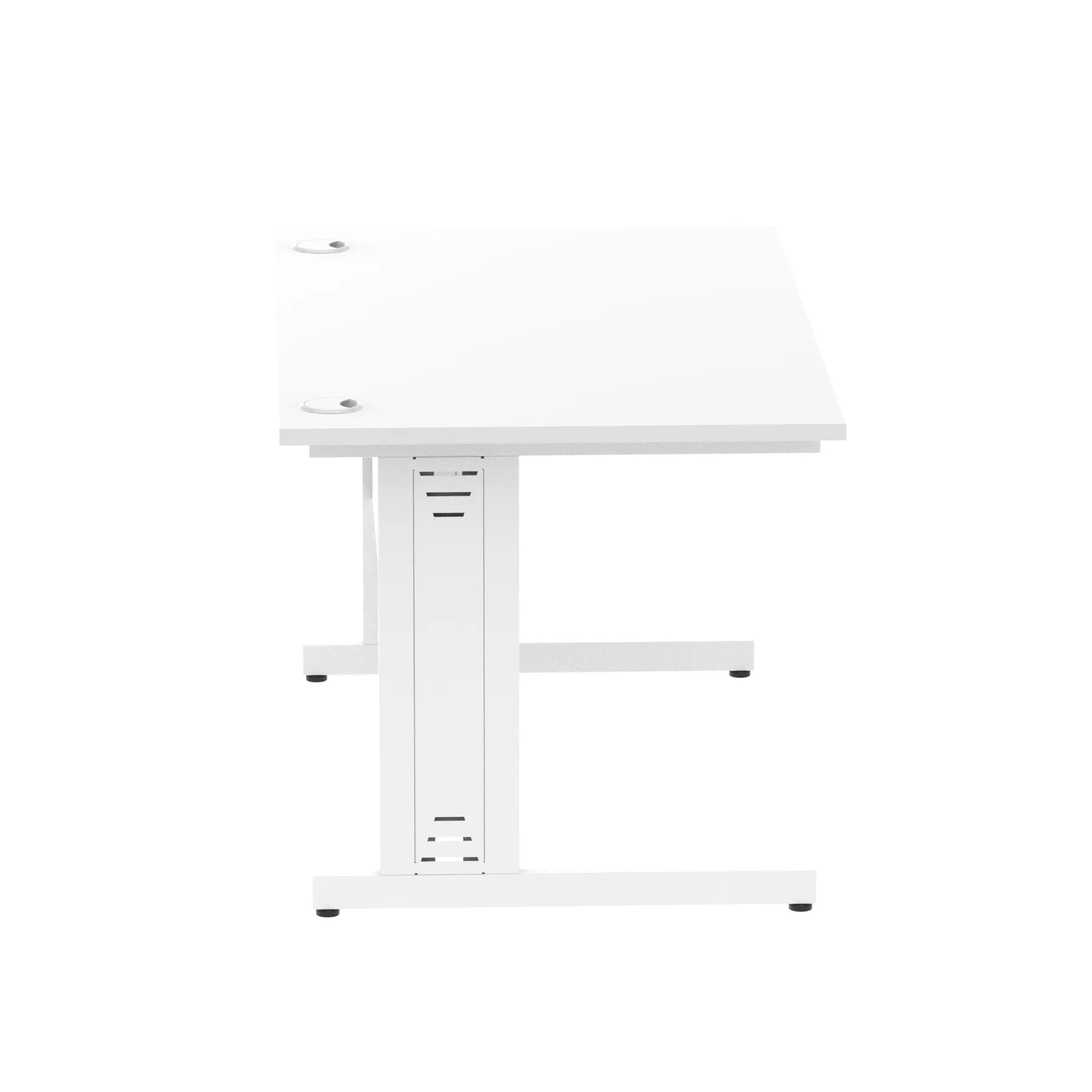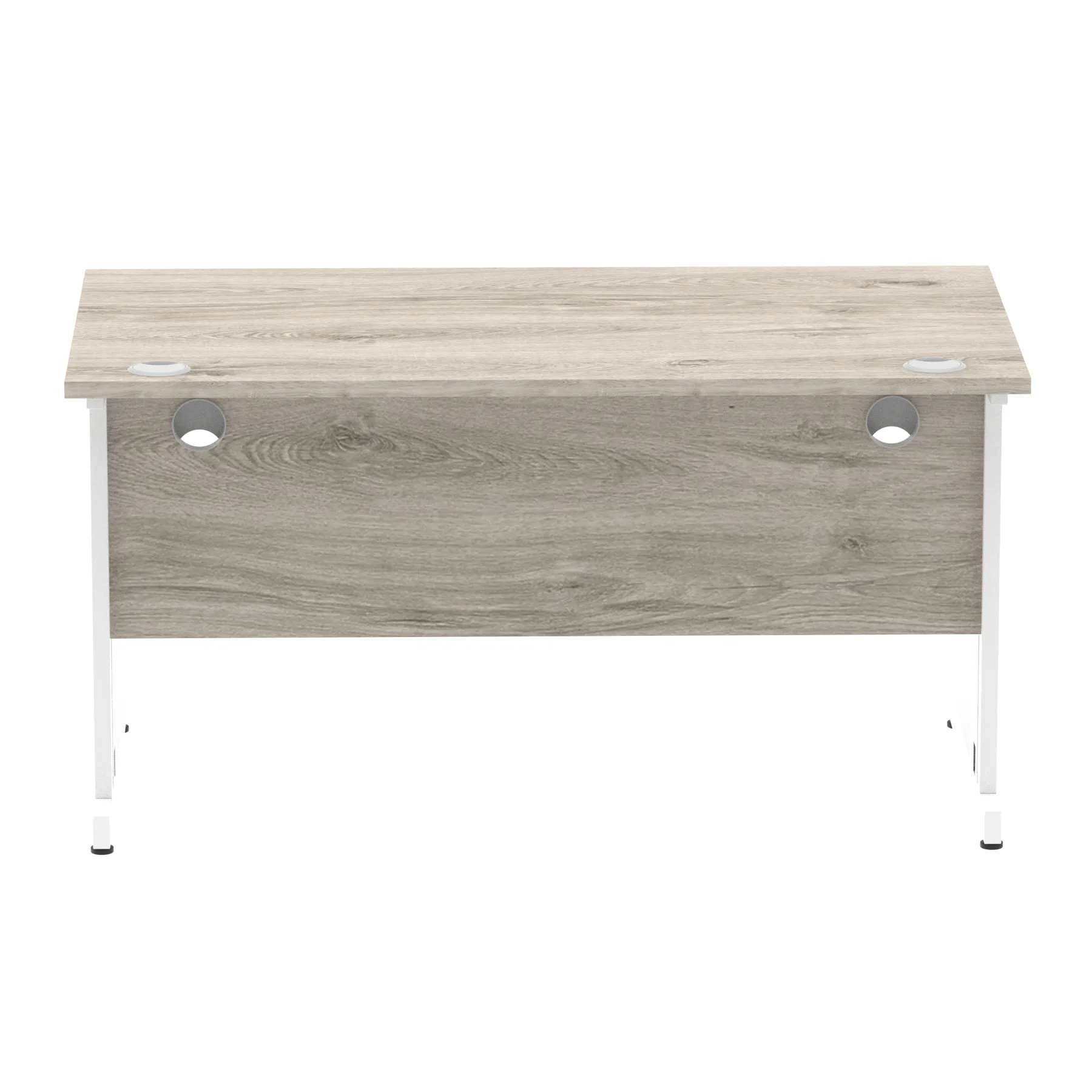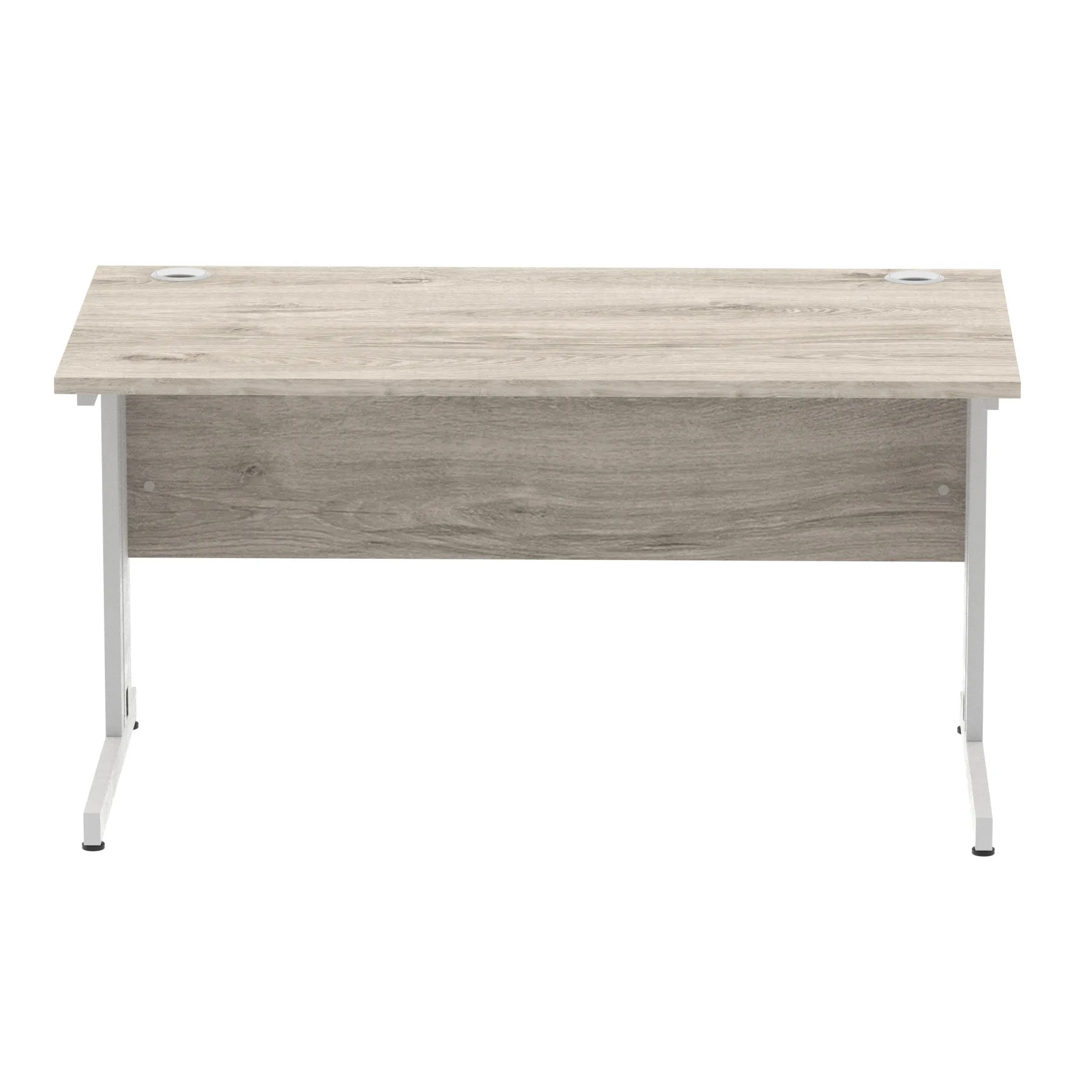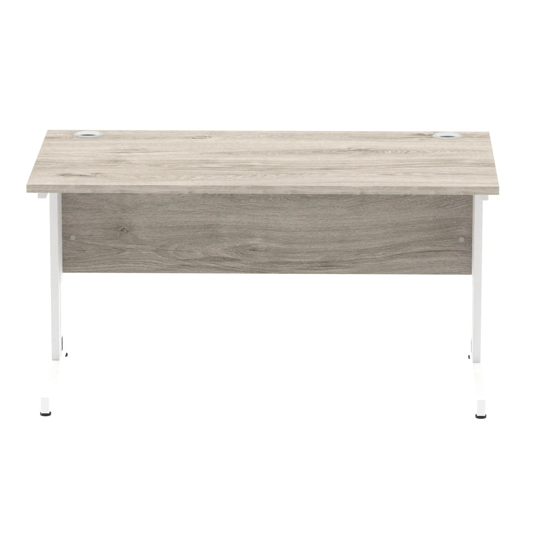 Impulse contract desk | 25mm tops | wire management panel | Heat resistant melamine finish | 18mm modesty panel | 2mm protective abs edging | Silver coated double strut legs | 2 cable ports | Height adjustable feet | Steel to steel fixings | 2 modesty panel slots | Deep set modesty panel (5″) allows for compatibility of most screen clamp fittings | Weight Capacity 135Kg
