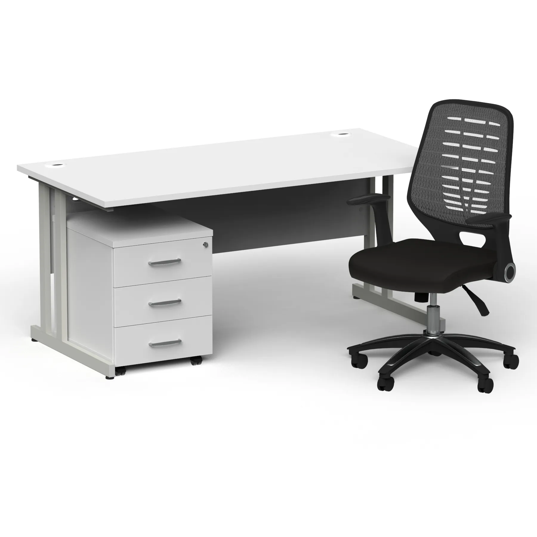 Impulse 1600mm Cantilever Straight Desk With Mobile Pedestal and Relay Silver Back Operator Chair