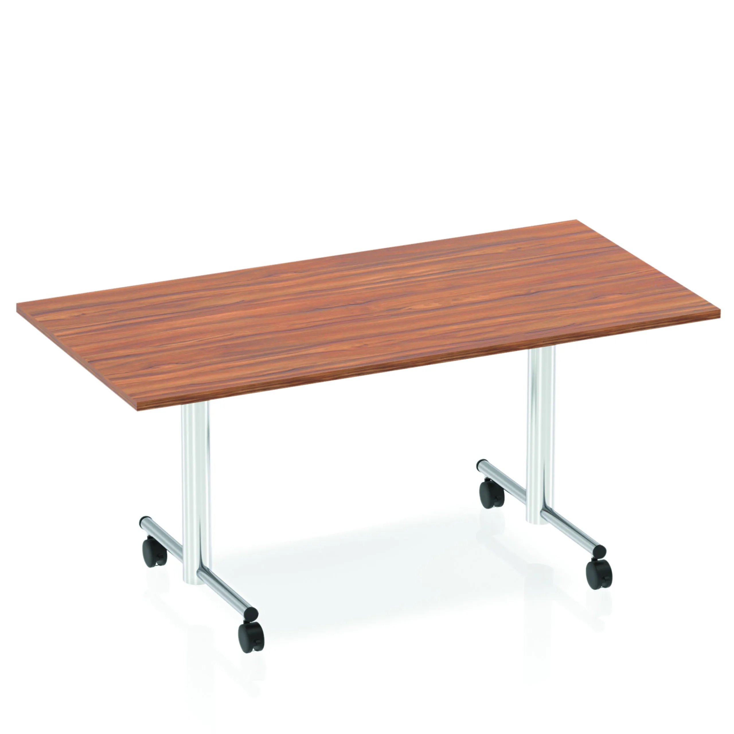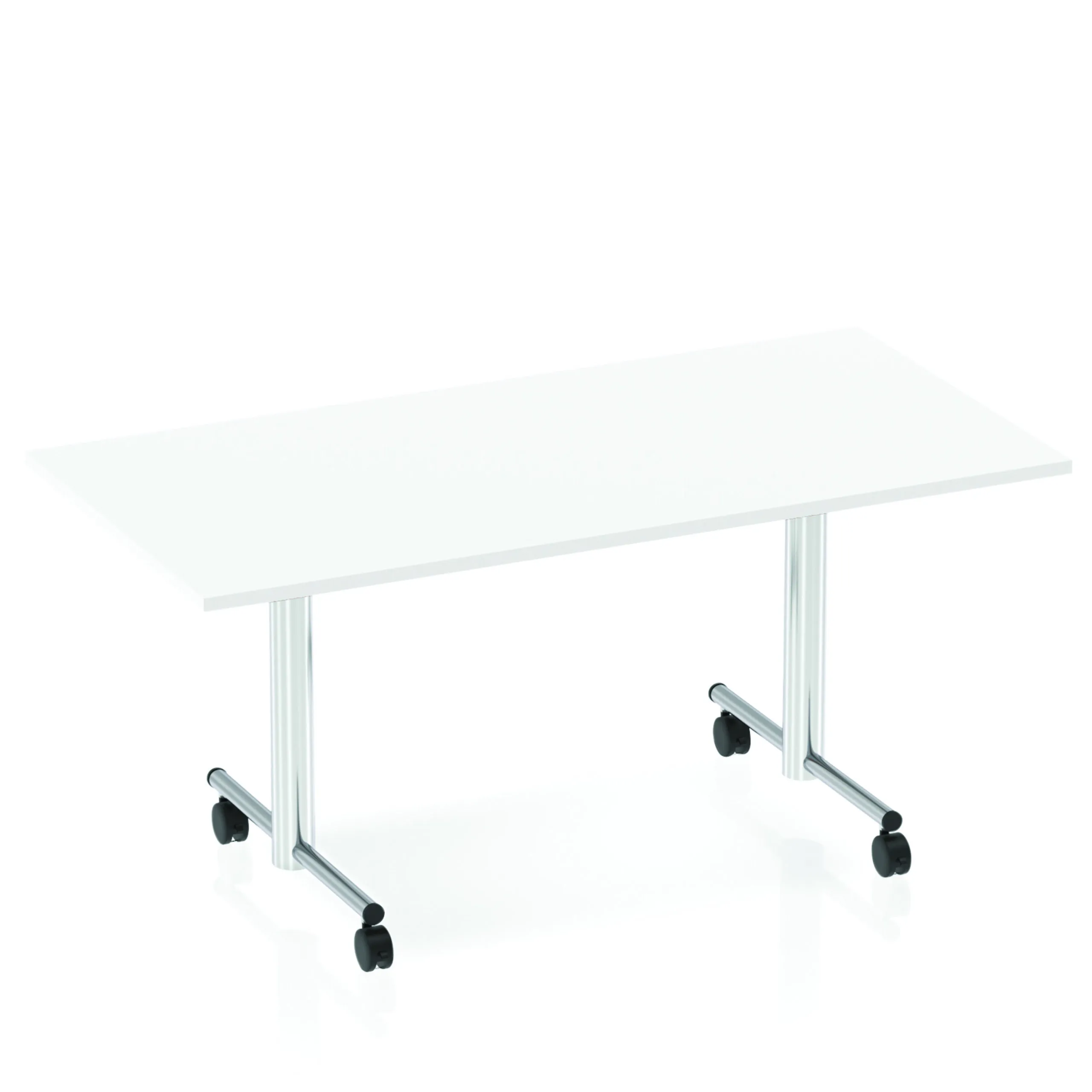 Impulse freestanding meeting table | Classic rectangular shape |Table folds easily for space efficient storage | Provides excellent team working environment | 25mm thick top | Attractive silver coated leg | 2mm abs protective edging | Heat resistant beech melamine finish | Steel to steel fittings | Weight Capacity 100Kg