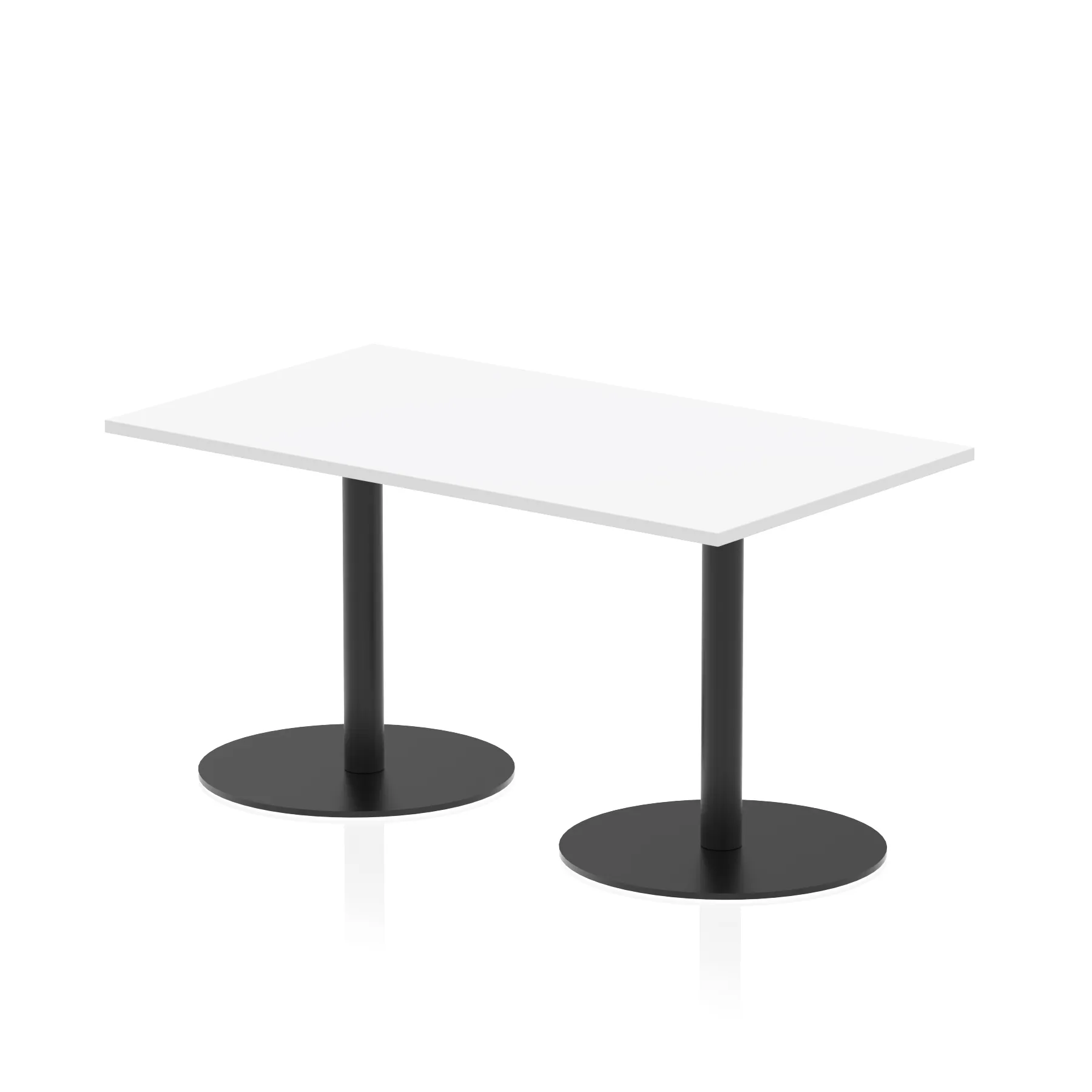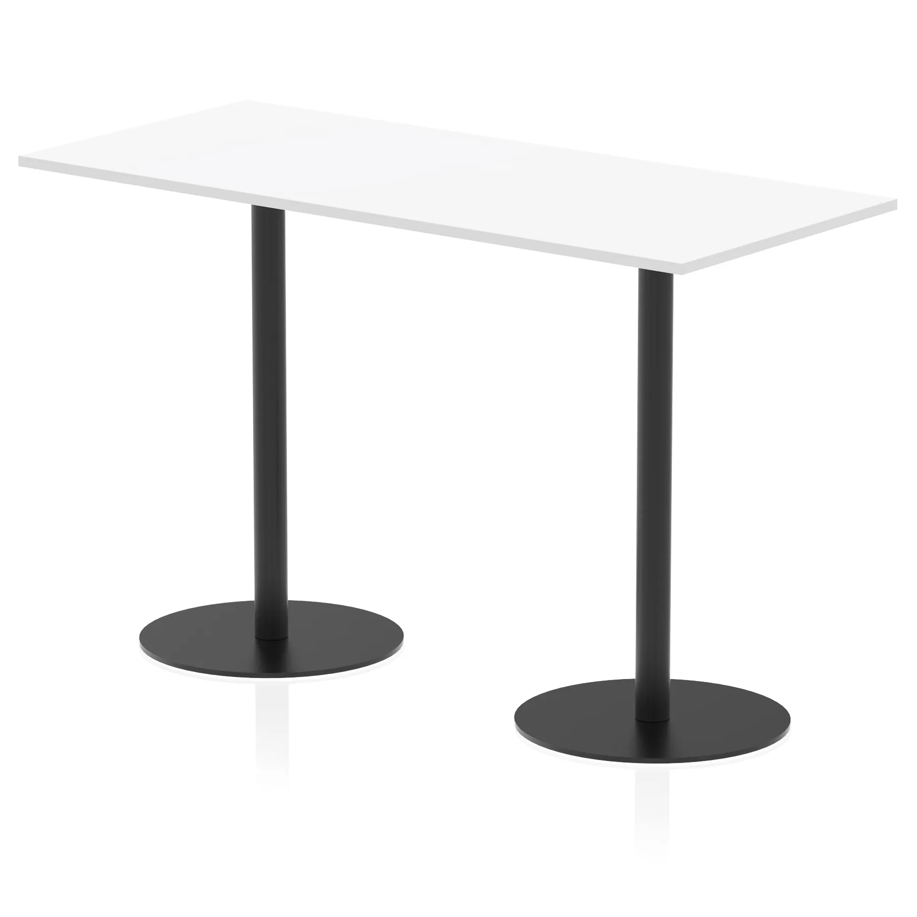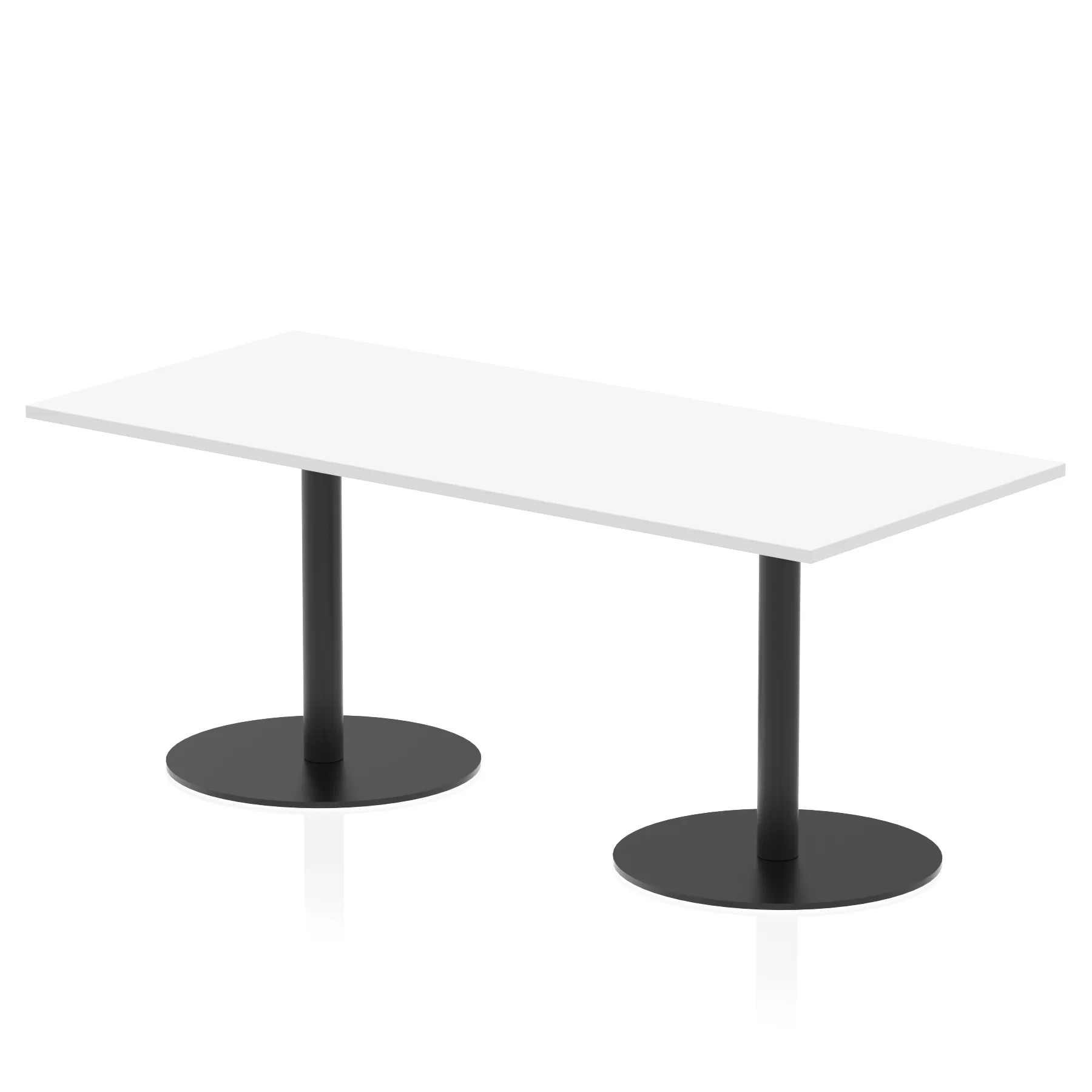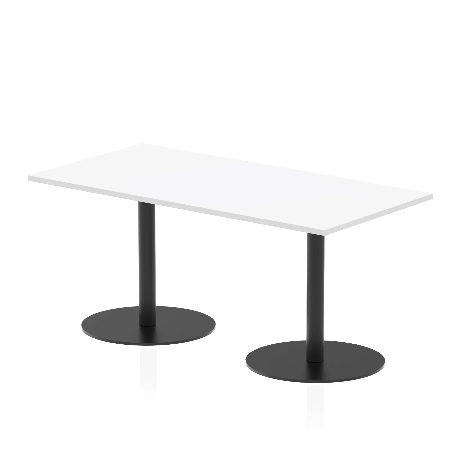 25mm thick desk top profile | Dual, brushed stainless steel effect circular base (580mm diameter) | Brushed stainless steel pillars (76mm diameter) | Weighted base provides stability | Two part bolted frame system