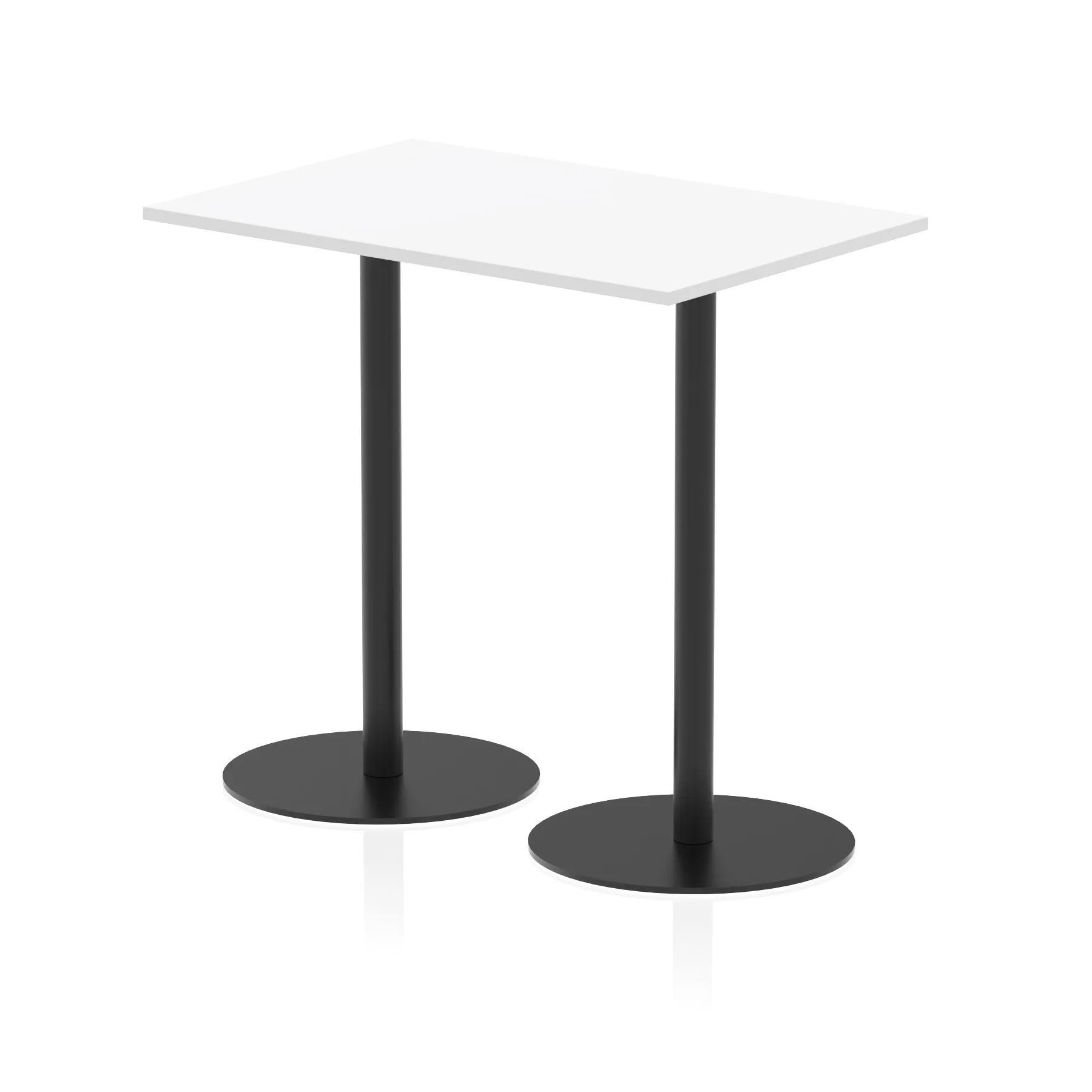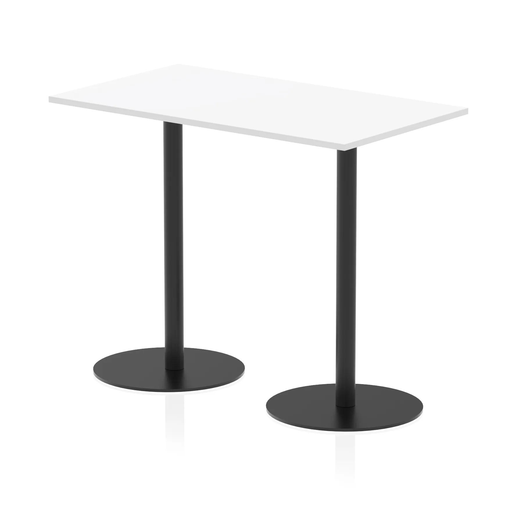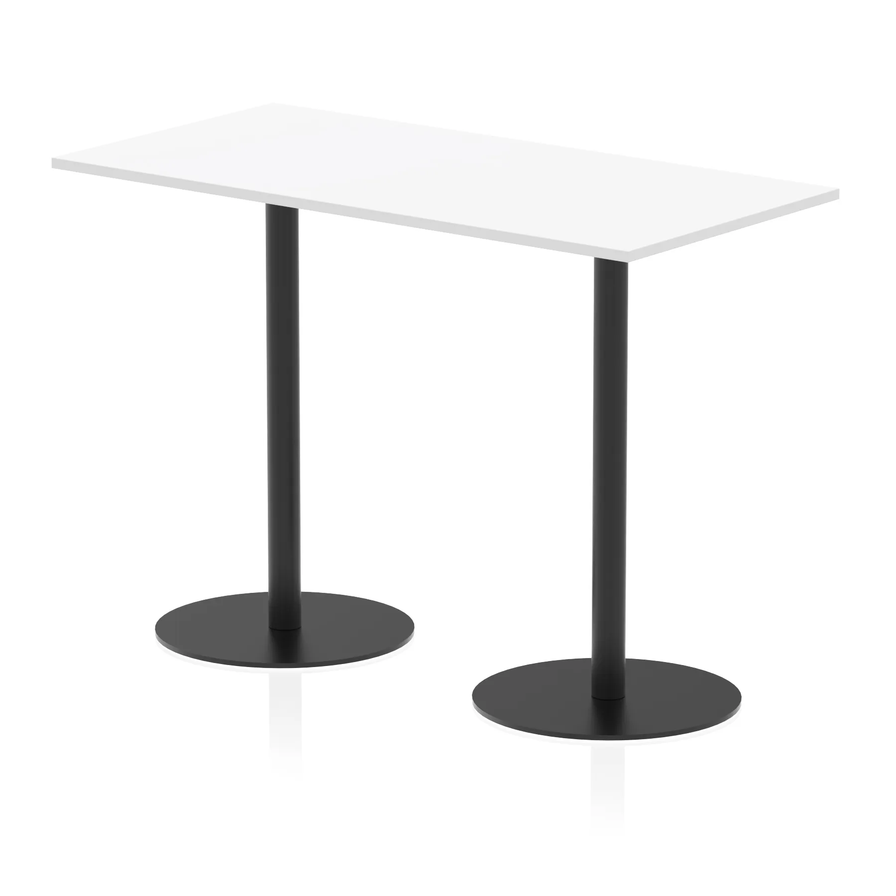 25mm thick desk top profile | Dual, brushed stainless steel effect circular base (580mm diameter) | Brushed stainless steel pillars (76mm diameter) | Weighted base provides stability | Two part bolted frame system