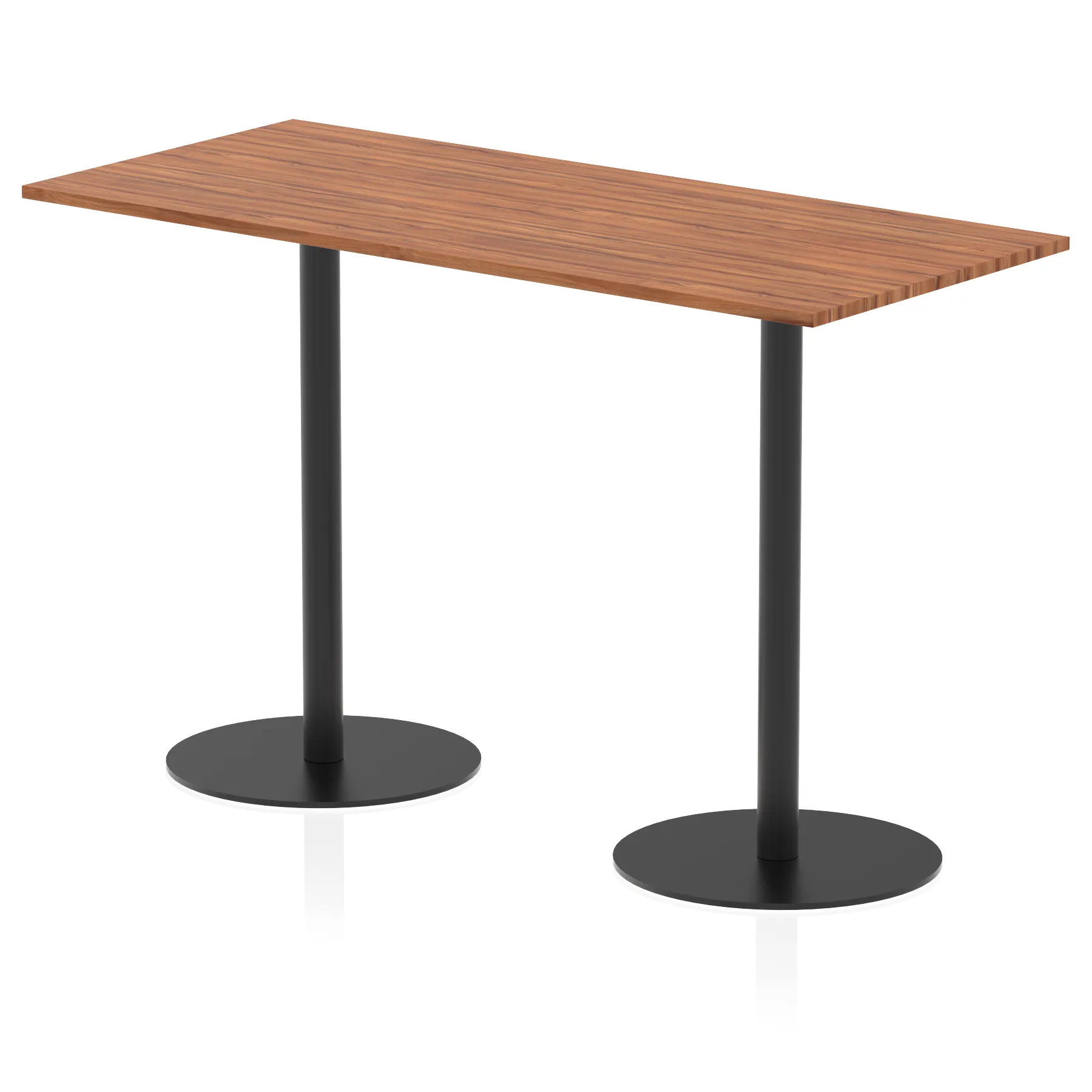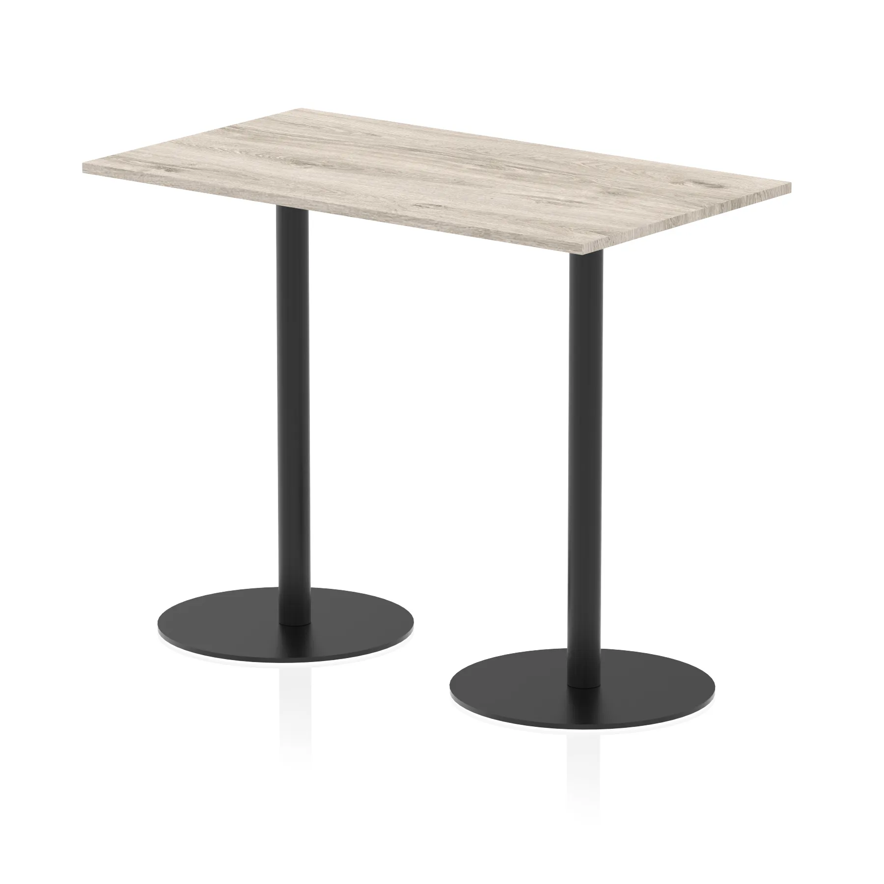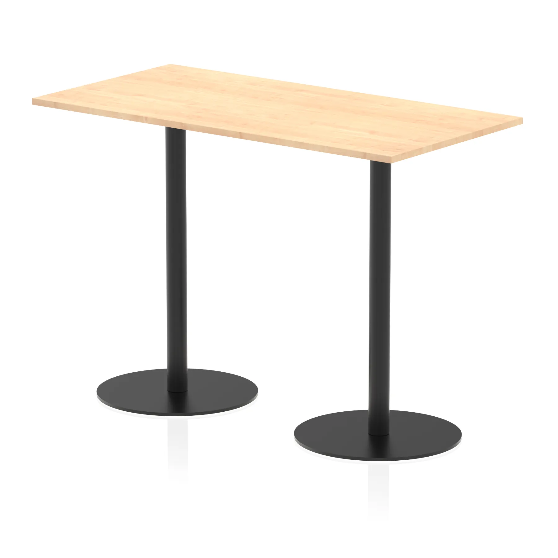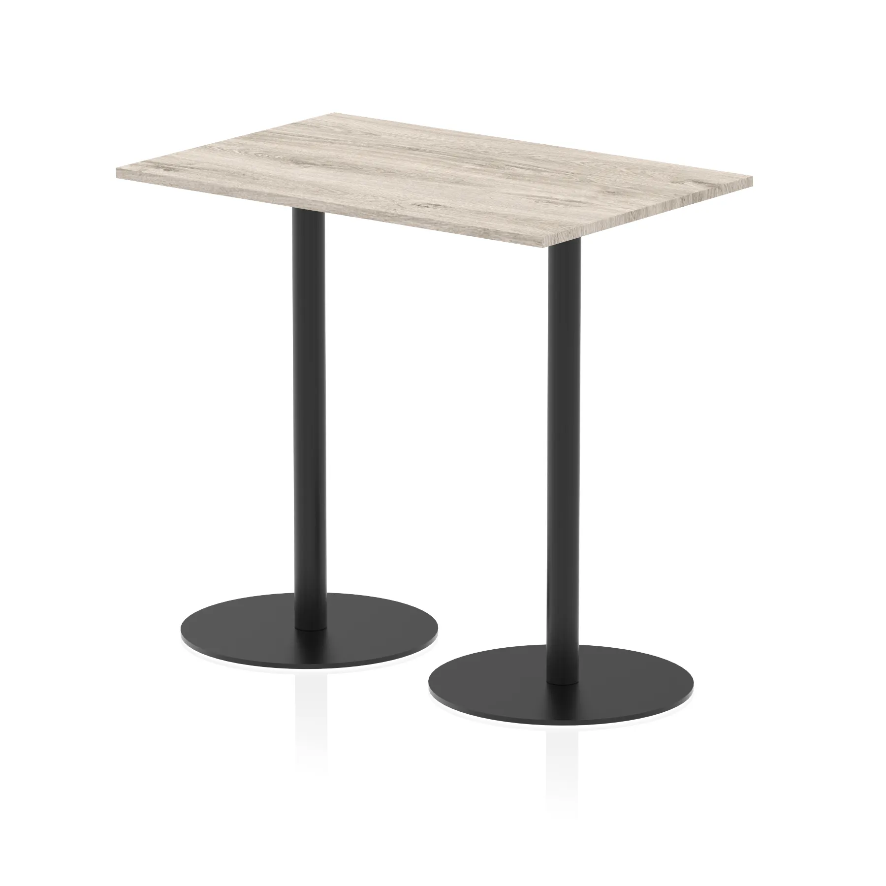 25mm thick desk top profile | Dual, brushed stainless steel effect circular base (580mm diameter) | Brushed stainless steel pillars (76mm diameter) | Weighted base provides stability | Two part bolted frame system