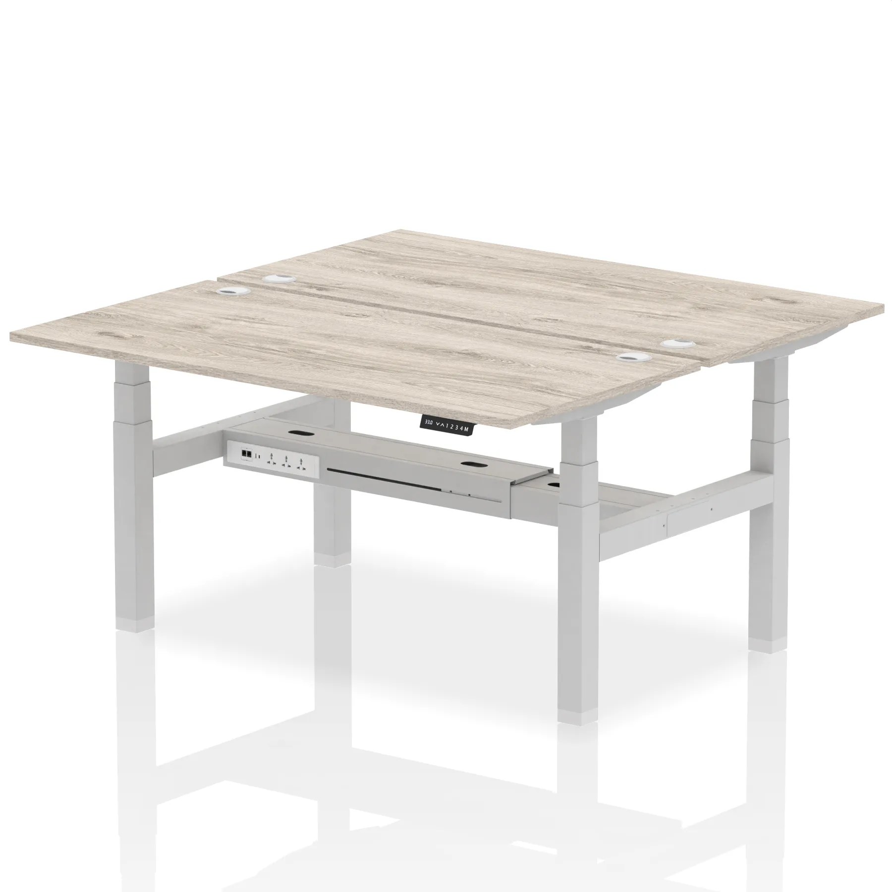 The Air Back-to-Back Height Adjustable Desk, designed for two, is the epitome of efficiency and connectivity. Each desk comes equipped with two Ethernet ports, a USB port, a USB-C port, and three UK plugs, catering to all digital needs. Integrated cable ports ensure a tidy workspace. Adjustable height options offer ergonomic comfort. This desk is the ultimate solution for teams seeking a connected, efficient, and adaptable workspace.
