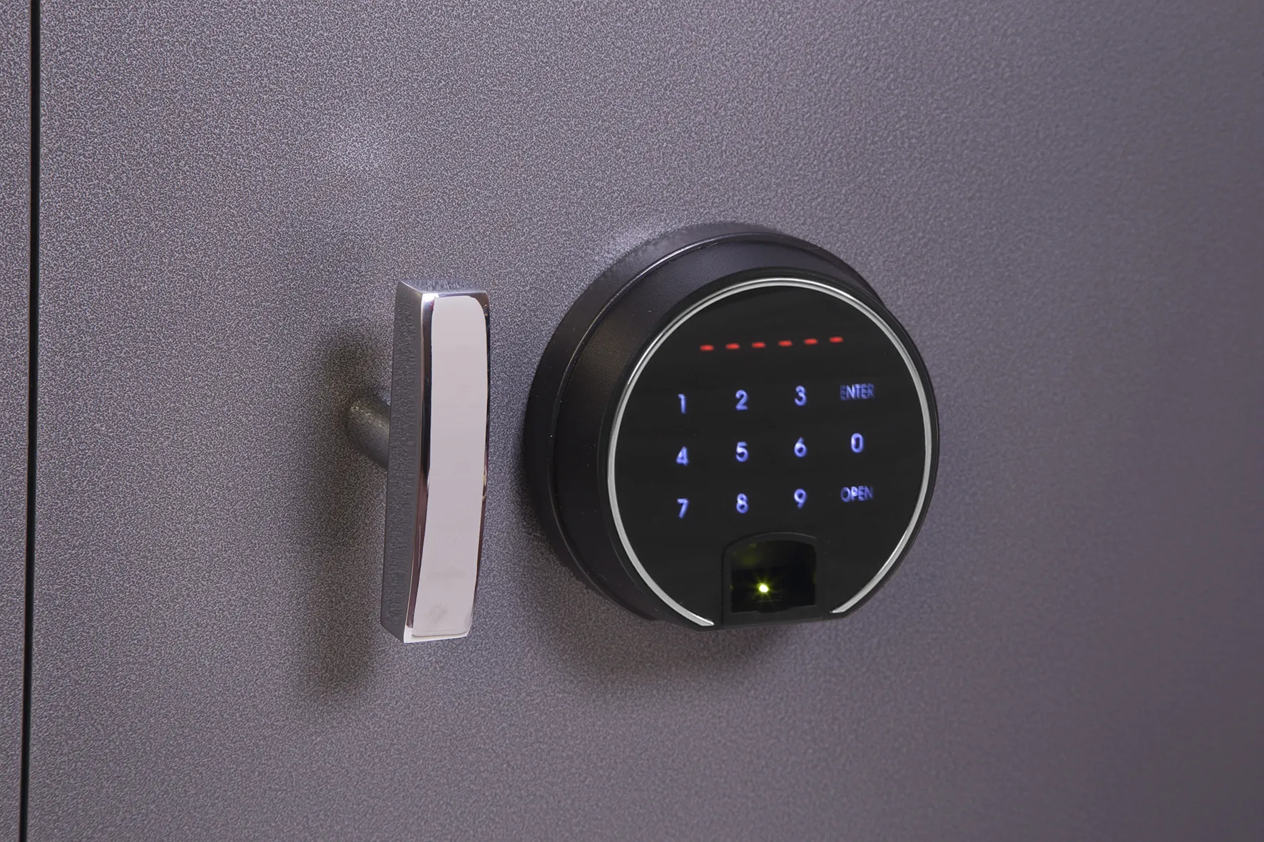 Fingerprint – Fitted with an advanced high security touchscreen keypad & fingerprint lock with clear LED display, internal alarm, dual control, hidden code and scrambled code that can be programmed as standard with up to 128 fingerprints